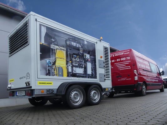 Ab sofort verfügen wir über ein weiteres Hochdruckpumpen-Aggregat AQUAJET® 14 von Hammelmann. Die Anhängeranlage mit einem maximalen Betriebsdruck von 3.000 bar bietet hohe Mobilität und ist vielseitig einsetzbar.